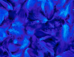 Beautiful abstract colorful purple and blue feathers on black background and soft white pink feather texture on white pattern and blue background