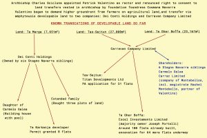 3 August 2018: Valentino transferred Tas-Sajtun, an area amounting to almost four football pitches, to Carravan via perpetual emphyteusis for €35,500 annually, redeemable (into ownership) after 20 years.